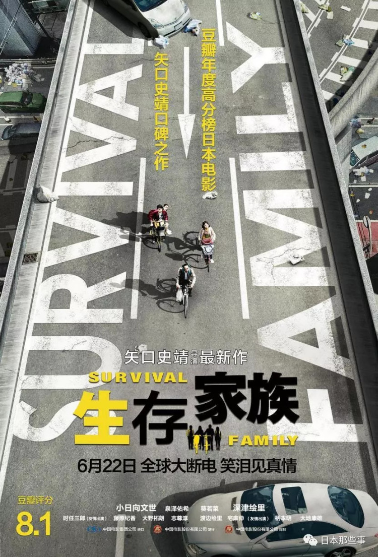 同年她还参演电影《生存家族》,演小日向文世和深津绘里的女儿铃木结衣。故事里,全球陷入大停电危机,于是他们一家决定骑自行车去妈妈的老家避难。