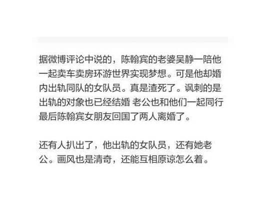 何炅亲自把吴静一托付给了陈翰宾,结婚后陈翰宾就想带吴静一去环球旅行。因为这是陈翰宾的梦想,本来吴静一是不想去的,但是为了老公还是决定放弃在关键期的事业,和他一起完成梦想。当时还有一对夫妇和他们一起环球旅行,可讽刺的是,陈翰宾却与这对夫妇的妻子偷了情,最后是吴静一自己一个人先回来。