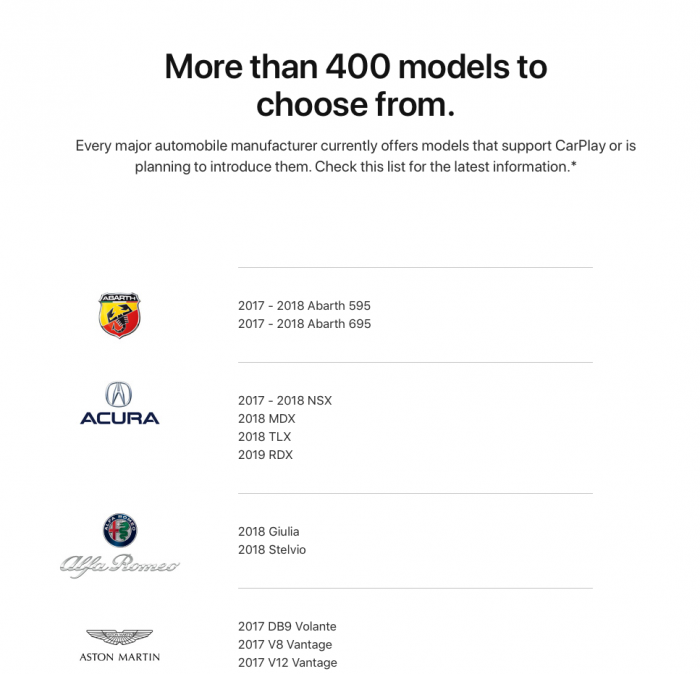 2018 是 CarPlay 市场扩展非常卓有成效的一年,丰田和雷克萨斯、马自达以及现在的捷豹路虎都开始支持将苹果这个车载平台作为预装选项。苹果官网披露,CarPlay 现在支持全美超过 400 款车型,几乎囊括所有主流车企。