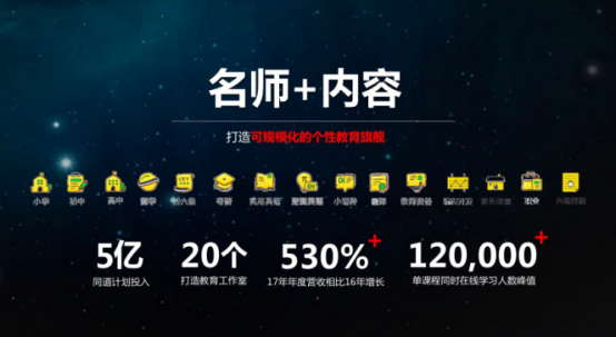 除技术外,有道在内容层面也不断深耕,以“名师+内容”让老师赋能,进行教育孵化,通过顶尖名师引导权威背书为用户服务。其中,有道以高中牛师团、考神四六级、考神考研、逻辑英语四个头部教育IP为优势,并于2016年推出了教育工作室孵化计划——“同道计划”,为更多用户提供了更具人格化的教育内容产出。目前,单课程同时在线学习人数峰值达120,000+。