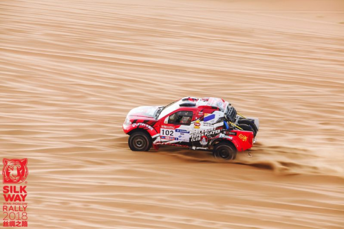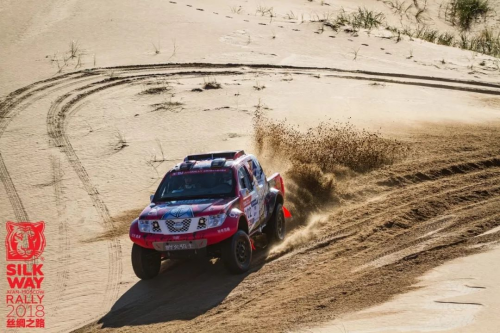 9月28日进行的第四赛段也是本站比赛最后一个特殊赛段,该赛起点在英雄会主会场西北方向,梦想大道路边,发车后直接向北翻越沙山进入沙漠,最后在通古淖尔湖附近结束。第四赛段的结束也是整个2018丝绸之路拉力赛的结束。最终,烽火骑士敖日格勒/黎鹏华无惧赛段的艰难与险阻,用稳定的发挥收获胜利的果实!