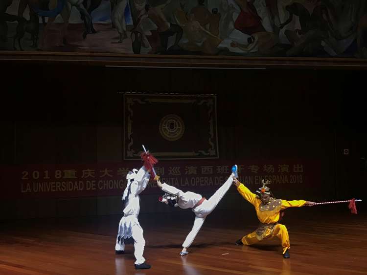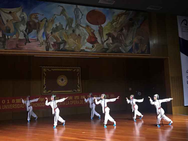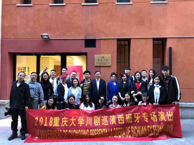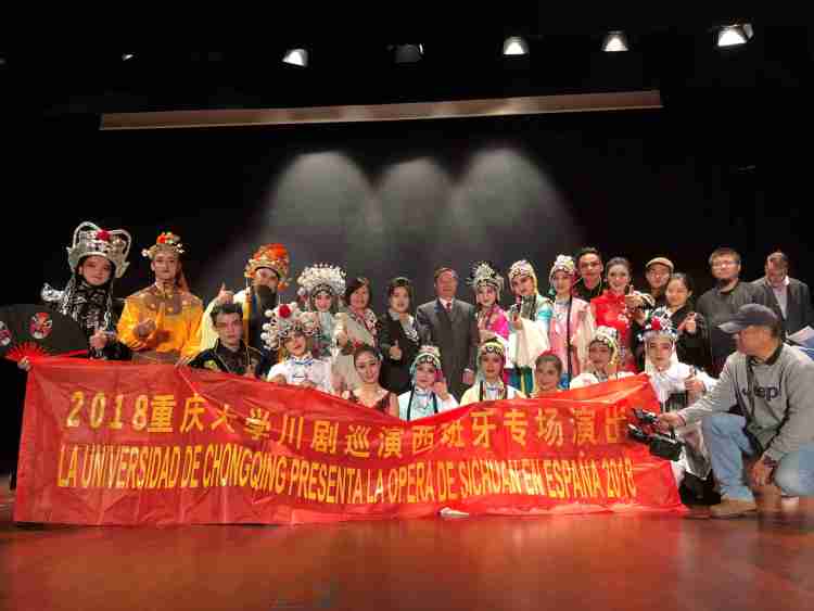 为推进学校“双一流”建设,在国家汉办的大力指导和支持下,2018年9月底至10月初,重庆大学川剧艺术团走进西班牙,辗转该国马德里、拉斯帕尔马斯、瓦伦西亚、萨拉戈萨和莱昂等5个城市,举办6场“曲风雅韵”主题演出,与西班牙人民分享唱腔美妙、技艺高超、生动幽默的川剧艺术,传承和弘扬中华优秀传统文化,受到数千观众的肯定和喜欢。