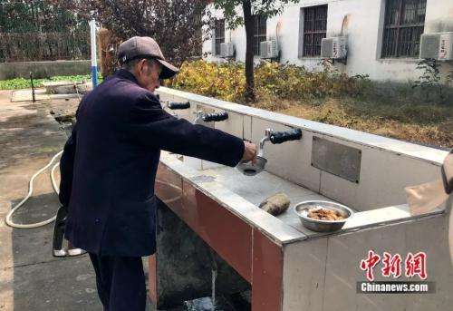 “吃饭啦!”11点, 听到开饭的喇叭声,王爷爷招呼着老伴,从房间里拿出餐具,和奶奶一起去食堂吃饭。“我们一顿饭三菜一汤,我只掉了两颗牙,但我不吃肉,吃了不好消化。”吃饭时,王爷爷还不时的给老伴夹菜,吃完了饭,两人端着各自的餐具,在水龙头前简单冲洗后,慢悠悠的走回房间,放在盆里准备细细刷洗。