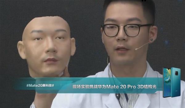 既然屏内指纹经受住了电解胶指纹膜和硅胶指纹膜,3D结构光是否也一样安全呢?在接下来的现场实测中,实验员分别拿出自己的6000万像素超高清照片、一比一3D打印超逼真人脸(无色)、一比一3D打印超逼真人脸(上色)分别挑战Mate 20 Pro的3D结构光是否会被骗过。