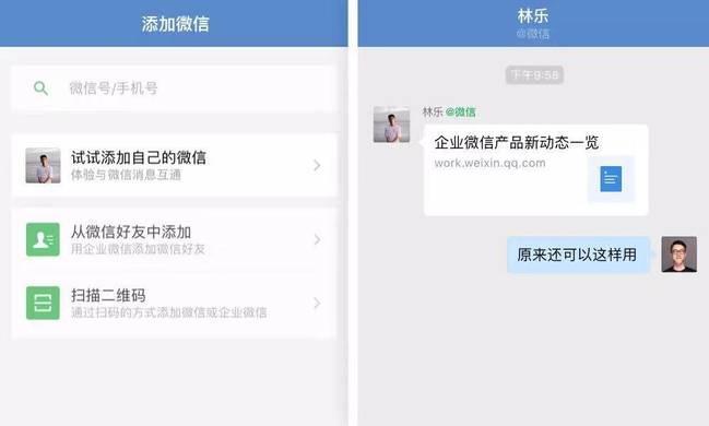 10月22日,企业微信发布2.6.0全新版本,继“互通单聊”功能内测后,进一步开放连接微信的相关功能内测。