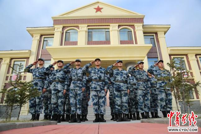 参加升旗仪式的空军漠河雷达站全体官兵一同举起右手,向伟大祖国致以崇高的军礼。