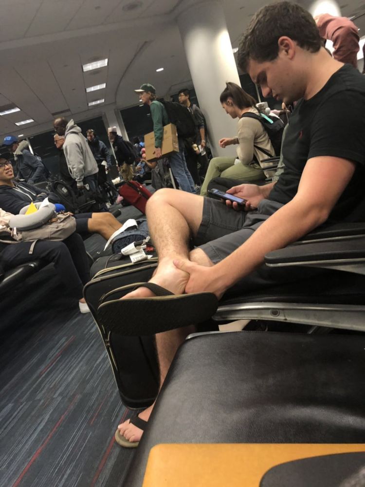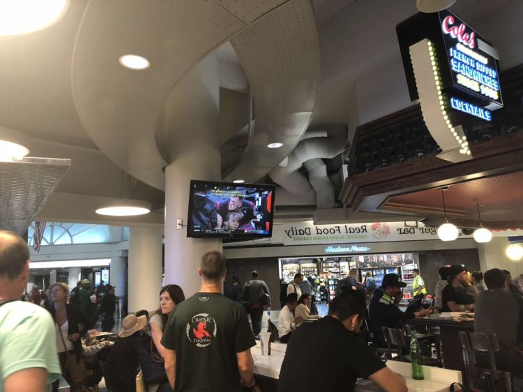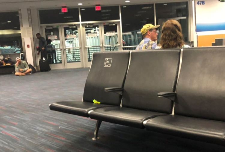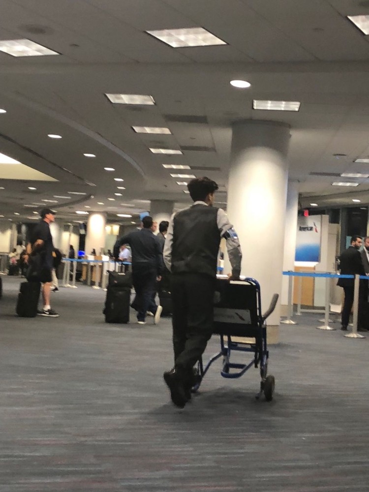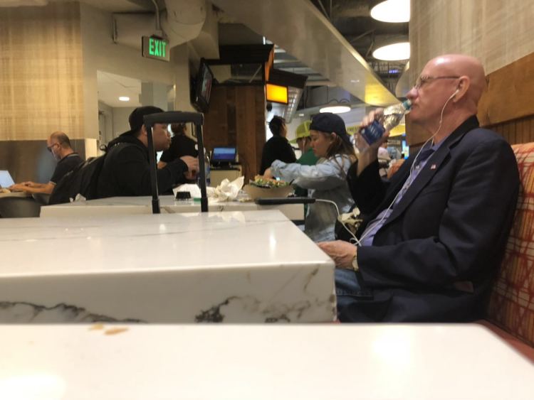 这是老萨坐在后面轮椅上拍摄的,地点在洛杉矶国际机场。这次是因为参加“中国网络名人环球行”的活动过境美国,其实连走马观花都算不上,但我转机的大厅主要走美国国内航班,在那儿等飞机的基本都是美国本地居民,算作一个奇特的窗口。对比一下这个窗口里美国人在特朗普时代同以前有什么一样或不一样的地方,或许也算是给“特朗普君治下的美国人民”做一个浅层的解剖吧-- 实际上,因为是坐着轮椅,活动范围极其受限,浅层……也不敢说,算是极浅层吧。