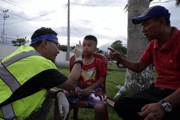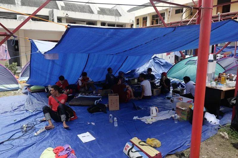 从医院出来,都海郎急忙前往当地印尼抗灾署设立的一处灾民集中营,在那里为受伤灾民提供医疗服务。
