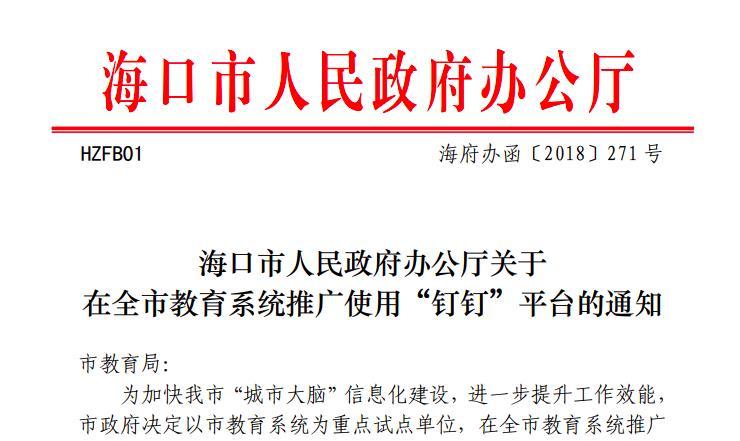 近日,海南省海口市发布了在全市教育系统推广使用“钉钉”平台的通知 ,加快校园信息化的建设,海口各市区教育局以及下属学校、幼儿园在 “钉钉”平台上完成组织架构搭建工作。