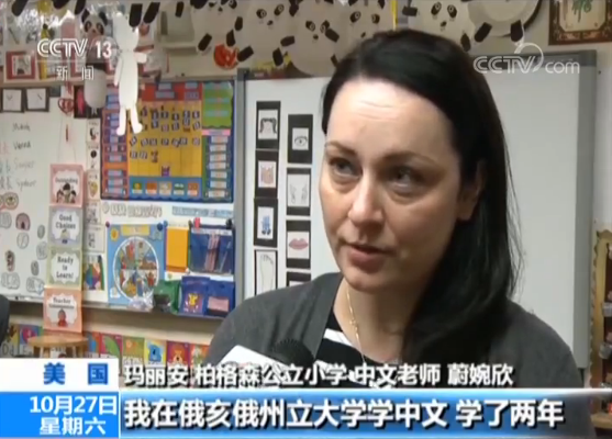 玛丽安⋅柏格森公立小学 中文老师 蔚婉欣 :我在俄亥俄州立大学学的中文,学了两年。