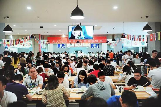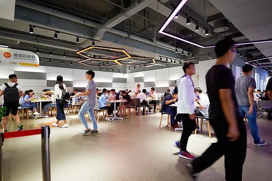 京东的食堂不是一般的大,从二楼到六楼,足足有五层楼,总面积达到2万多平米,毕竟要供1万多员工吃饭可不是那么简单的事。