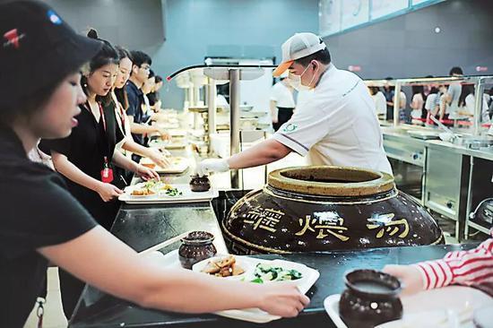 它更像是一个美食城,据说一天的菜品可以达到400多种。在京东工作的员工,从来不用操心中午吃什么,不夸张地说,他们来上班,就是改善伙食来了。