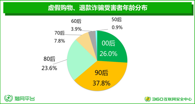 数据显示,在受骗用户的年龄段分布中,90后成为人数最多的受害群体,其次为00后,受害呈现出年轻化趋势,这表明网络诈骗触及的人群年龄越来越低。而各种游戏平台、虚拟商品交易平台在监管方面的不成熟,也让防范意识较低的00后越来越多陷入网络诈骗的泥沼。