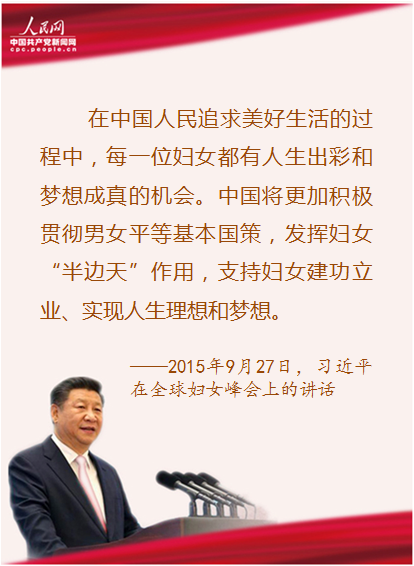 “中国将更加积极贯彻男女平等基本国策,发挥妇女‘半边天’作用,支持妇女建功立业、实现人生理想和梦想。”党的十八大以来,以习近平同志为核心的党中央高度重视妇女事业,习近平总书记在不同场合多次强调发展妇女事业的重要意义,为妇女工作的开展指明了方向。
