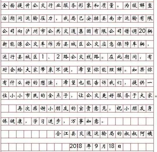 作文还得到了当地交通局的回应