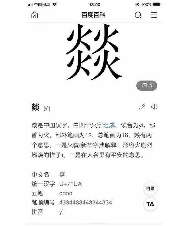 燚形容火在燃烧,而易烊千玺的应援色也是红色,可以说是很振奋人心的一个字了!而且还有上面图片中的这几种含义,大佬的品味就是不一样,真的是社会人中万人迷了!