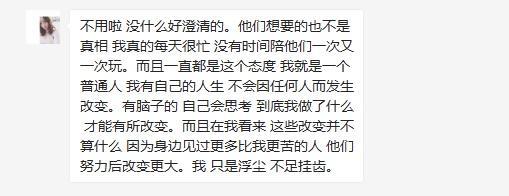 现在她每天都很忙,有时累到站着都想睡,没有时间回应或者去声讨网络暴力。而且,她认为,那些网友想要的也不是真相。