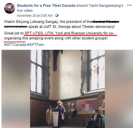 那么首先,这次邀请“藏独”头目洛桑桑盖来多伦多大学发表演讲的,并不是学校的校方,而是耿直哥前面所提及的来自加拿大四所高校的“藏独学生社团”(英文名为:Student for a Free Tibet,简称SFT)。