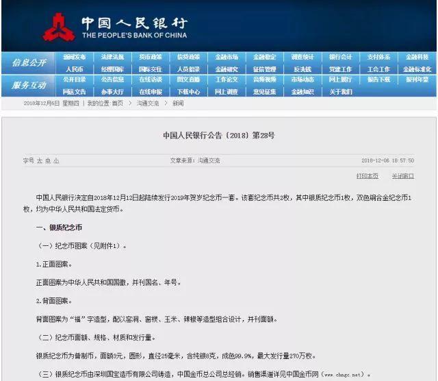 二、2018年12月19日前,中国人民银行分支机构将向社会公告当地贺岁币的分配数量。