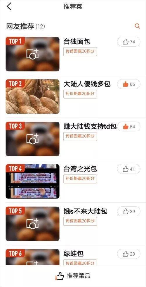网友在大众点评吴宝春的店面展示里,为吴宝春的面包起了各种独特的名字,比如“台独面包”“大陆人傻钱多包”等。