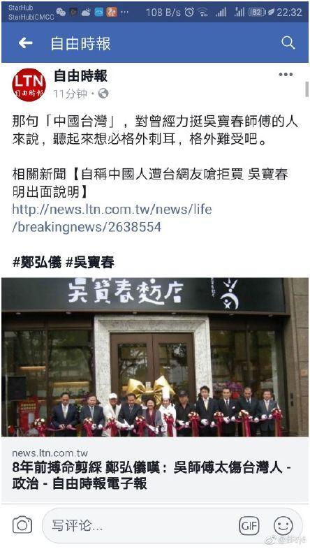 玻璃心碎落一地的不仅仅是那些情绪激昂的台湾人,还有台湾的绿媒。比如绿到骨子里的《自由时报》说,那句“中国台湾”,会让曾经力挺吴宝春的人听来“格外刺耳、格外难受”。
