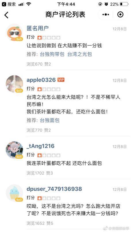 还有很多人给吴宝春的面包店只打了一星,言语里或者愤怒,或者嘲讽,他们应该代表了很多人对很多疑似“绿色台商”的真实情绪。