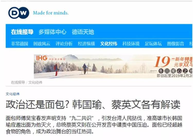 相比于蔡英文将一个面包店的问题上纲上线到政治层面,最近在台湾颇为火热的韩国瑜要冷静得多。11日下午1点半,韩国瑜为吴宝春护航称,希望台湾民众能做吴宝春的后盾,让“单纯生意人能够不碰政治,发展自己事业,并得到两岸人民祝福”。