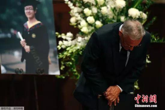当地时间2014年7月31日,美国加州阿罕布拉,在南加州大学遇袭身亡的中国留学生纪欣然的父母在停尸房看儿子遗体之后,痛哭流涕。