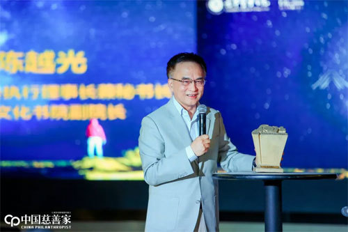 敦和基金会执行理事长兼秘书长、中国青基会原副理事长陈越光带来了一块厚重的石头,上面刻着希望工程的徽章图案。