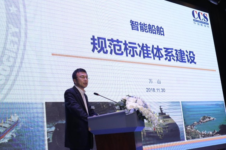 蔡玉良介绍智能船舶规范标准体系的建设,分析问题指出:法律法规不会成为新技术发展的制约因素。智能船舶规范标准体系建设,必须依靠顶层规划,从顶层抓起,使智能船舶标准化形成一个有机整体。中国船级社一直在船舶检验模式、验证标准和审核手段方面引领着智能船舶规范标准。