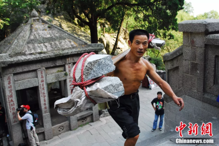 他们静默无言地穿梭于如织游人中,同样的一段路程要用比游客多数倍的时间和体力,他们一肩扛风雨,一肩挑人生,早已与泰山相融相生,成为泰山精神的最佳注脚。