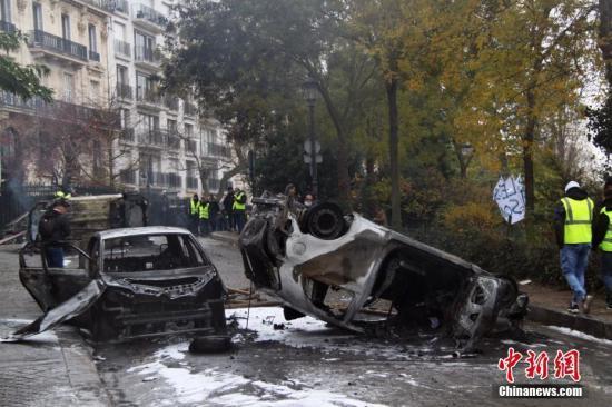 当地时间12月1日,巴黎再次发生大规模示威活动。数以千计示威者聚集在凯旋门,多辆汽车被损毁。中新社记者 李洋 摄