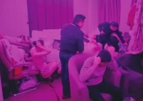 “坐好、别动,我们是公安局的……”13日晚9点13分,8602号“休息室”刚打开一条缝,守在门口的便衣民警便冲进去,控制5男1女。民警在现场还发现一名熟面孔,“怎么又是你,这是第几次”,这名“马仔”谎称“刚过来的”。民警要求“马仔”刷卡打开8605“选秀房”,里面一涉嫖男子正准备挑技师,“马仔”正介绍服务价格,帘子后有9名女子。见民警突袭,11人神色慌张、乱成一团,为躲避镜头,他们赶紧蹲在地上。