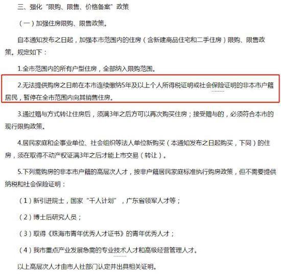 珠海一位地产中介相关工作人员也表示,目前非户籍人口只用交一年社保就可以购房。