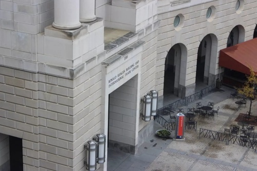 伍德罗·威尔逊国际学者中心位于“智库街”南侧的宾夕法尼亚大道上。透过办公室窗口,刚好可以俯瞰罗纳德·里根大厦和国际贸易中心。威尔逊中心亚洲项目主任邓志强曾是五角大楼资深官员,他在接受《环球时报》记者采访时称,该中心重视跨学科研究,近两年在宾夕法尼亚大学发布的《全球智库指数报告》中的地域研究领域均位列第一。