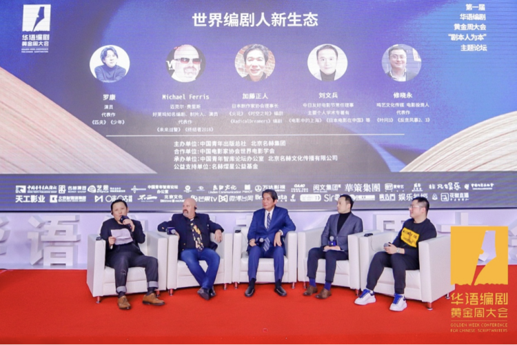 本届华语编剧黄金周大会联合中国电影家协会世界电影中心举办了“剧本人为本”主题论坛。论坛邀请了《花木兰》编剧Raymond Singer、《泰囧》编剧束焕、《终结者3》编剧Michael Ferris、《让子弹飞》编剧危笑、《火花》编剧加藤正人、中日友好电影节常任理事刘文兵、《叶问3》出品人电影投资人修晓永等嘉宾,与现场的青年编剧进行了亲密的互动和深入探讨。