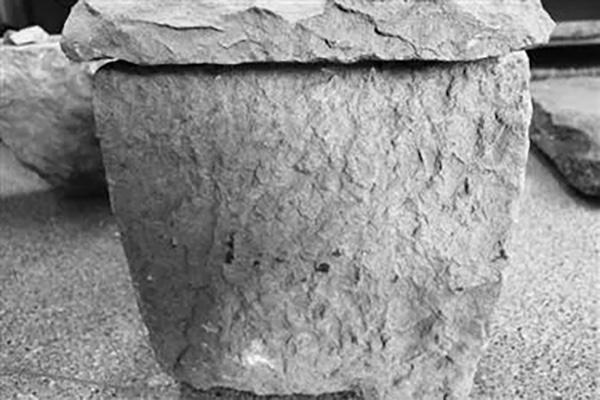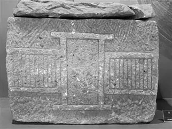 这一墓葬中的石棺是南北向的,整个石棺的四壁由六块石板拼成,东西两壁各2块,南北两壁各1块,棺的四角有榫卯相接,棺底由8块大小不等的石板铺成,墓顶由3块石板做棺盖。制作石棺的石材都经过了简单的加工和修整,其中一面凸凹不平,一面较为平齐,平齐的一面朝向棺内。
