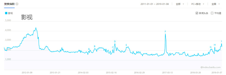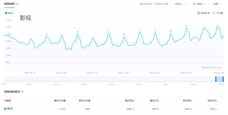反映到百度指数里,可以看出,从2018年起,影视一词的百度指数开始持续攀升;近3个多月,整体同比更是增长了44%。