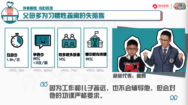 此外,还有一个比较特殊的“鸭梨系”,有 9% 的比例。这种代际关系的家庭里充满鸭梨和离别,常见于留守儿童家庭、单亲家庭。