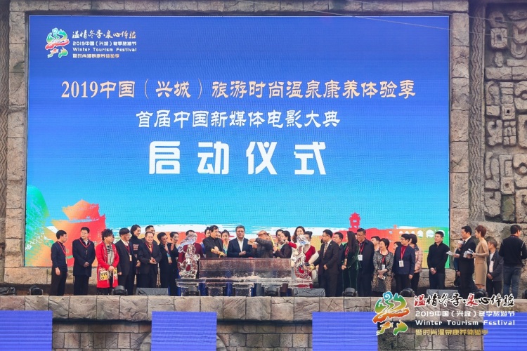 在开幕式上,2019中国(兴城)旅游时尚温泉康养体验季暨首届中国新媒体电影大典正式启动,中国艺术节基金会理事长、中国文物保护基金会秘书长安然,著名电影导演丁荫楠,中国艺术节基金会专家委员会委员、原宁夏军区司令员昌业廷,中国电影制片人协会常务副理事长王凤麟,中国电影家协会秘书长、中国电影评论学会会长饶曙光,葫芦岛市人民政府市长王力威,葫芦岛市委常委、宣传部长冬梅,葫芦岛市人大常委会副主任王忠平,葫芦岛市人民政府副市长黄晓霞,葫芦岛市政协副主席李翠英,葫芦岛市人民政府秘书长、办公室主任宋晓东,兴城市委书记赵家鹏,兴城市人民政府市长袁国相,葫芦岛市文化旅游和广播电视局局长杨丽芳,中国电影报社社长王迎庆,文化部艺术发展中心影视文化交流中心主任、中国微电影大典常务副主任李金龙,文旅部中国文化遗产保护研究院民族文化艺术发展委员会主任陈香,国家广电总局发展研究中心电影所所长刘汉文,原国家旅游局正局级巡视员、国际休闲经济促进会主席李克夫,北京金必德城市规划设计院院长沈青,中国新媒体电影大典秘书长、香港卫视时尚台台长、北京中视完美国际传媒董事长王朔,中国内地流行乐男歌手、制作人杨臣刚,著名演员、《甄嬛传》端妃娘娘饰演者李宜娟,著名模特、中国最佳职业时装模特王敏,著名模特、新丝路世界超级模特大赛总决赛亚军张晓雯,时尚先生、艺术策展人、央视同一首歌副导演刘彭生等领导嘉宾共同参与启动和见证了这一启动环节。