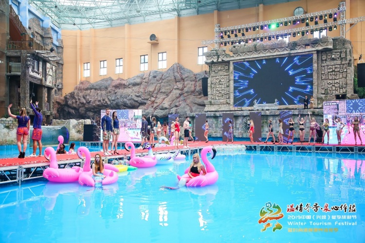 在首次举办的2019中国(兴城)冬季旅游节开幕式上,结合“比基尼+温泉”的元素,突出了“维多利亚的秘密+加勒比海盗”的风格,伴随着俄罗斯“狼嫣组合”、中国内地女歌手龙梅子的歌声中,30名外籍超模闪亮登台,惊艳四座,展示了BALNEAIRE范德安、小桃泳衣等兴城泳装知名品牌,完美地呈现了“渤海明珠 时尚泳都”的泳装风采,打造一场的“时尚与旅游”、“唯美与力量”的视听盛宴。中国内地流行乐男歌手、制作人杨臣刚也在开幕式上献唱,也现场嘉宾和游客进行了互动。