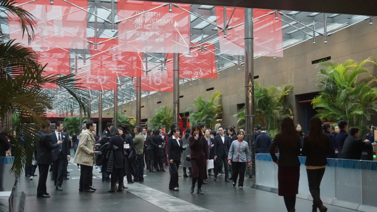 观众们陆续入场,首先映入眼帘的是“2007至2018”字样的红色垂幔,为大剧院北水下廊道增添了节日的欢快气氛。脚下2007至2018的数字,象征着国家大剧院已经走过的11载春秋。廊道两旁身着色彩绚丽舞台服饰的戏剧人物,引来不少观众驻足拍照。
