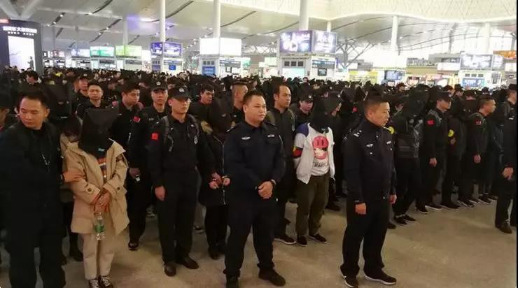 2018年12月20日19时,G6031次列车缓缓停靠在深圳北站。车门打开后,从9号车厢到13号车厢,102名犯罪嫌疑人被押解下车。