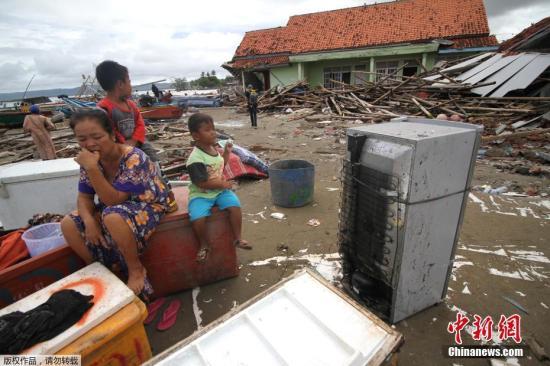 资料图:当地时间12月24日,印度尼西亚巽他海峡海啸发生两天后,幸存者返回被海啸破坏的房屋寻找可用物品。印尼政府、军队、红十字会以及志愿者所组成的救援队伍正在灾区开展搜救工作。