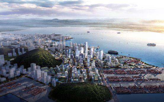 规划构建了“两带一港七版块”的空间结构,其中“两带”指滨海生态文化带和城市综合服务功能带,通过多层级公共服务设施和多类型产业服务功能集聚,为打造一个融合山、海、林、城、岛、港、湾多元素的世界级城市新中心奠定基础;