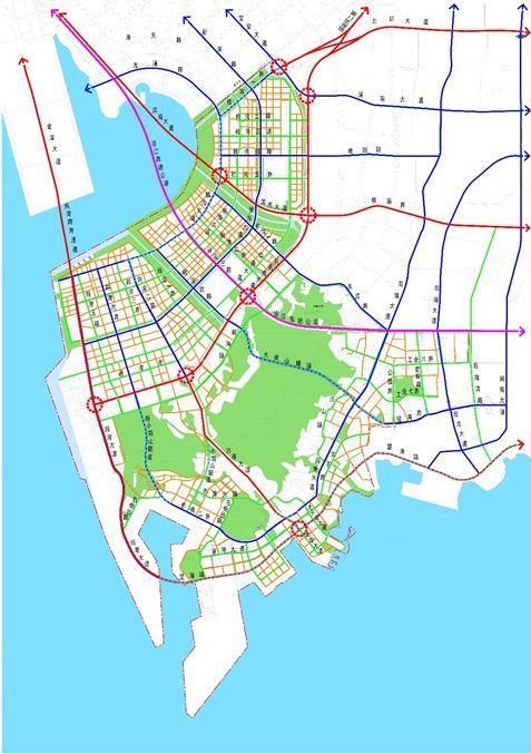 在道路交通方面,规划优化蛇口南部和赤湾片区干道路网,通过开辟新通道、建设地下快速路,构建半岛双U的路网结构。近期由沙河西路+望海路+兴海大道+月亮湾大道构成自贸区“U”型的快速路结构、由南海大道+赤湾二路+新小南山隧道+妈湾四路+梦海大道构成“U”型的干线性主干路结构,预留远期望海路接妈湾大道的可能性,形成沙河西路+望海路+妈湾大道的自贸区大“U”型的快速路结构。