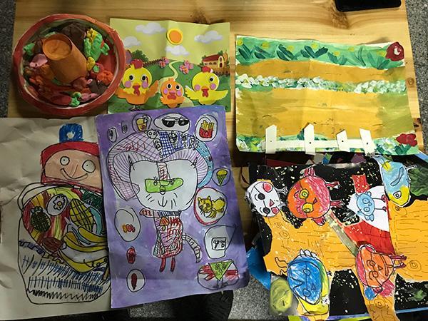 杨杨的叔叔拿出一摞杨杨的画说,杨杨画画很有天赋。一位老师评价他,“很有灵气和想象力,我特别喜欢他的画。”