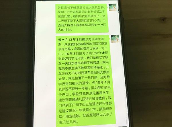 黎中原说,杨杨入学前他告知了园长,孩子患有自闭症。但当地教育局的通报称,幼儿园事先并不知情。事后澎湃新闻拨通园长电话问及此事,园长用粤语匆匆说了一个“冇”(意为没有)之后便挂断了电话。