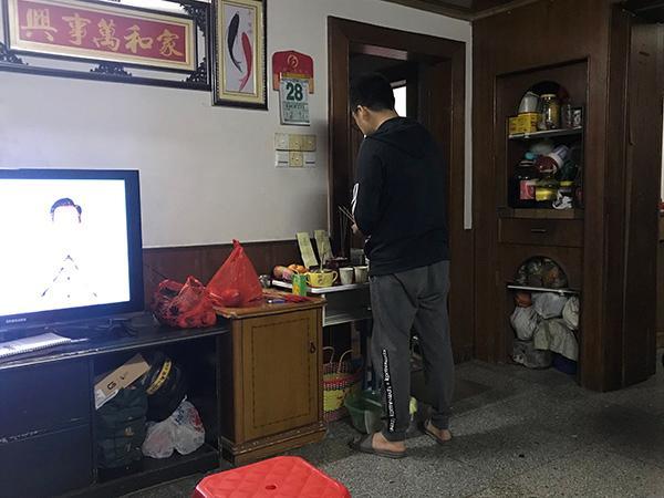 黎中原给妻儿上香 澎湃新闻记者 沈文迪 图