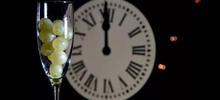 随着倒计时钟声的敲响,人们大口开吃代表着美好愿望的葡萄,每一次倒数吃掉一颗,并许下一个心愿,祈求平安、幸福、健康和财富。一共吃掉12颗葡萄,象征着新的一年从年初至岁末的每个月都吉祥如意,好运常伴。